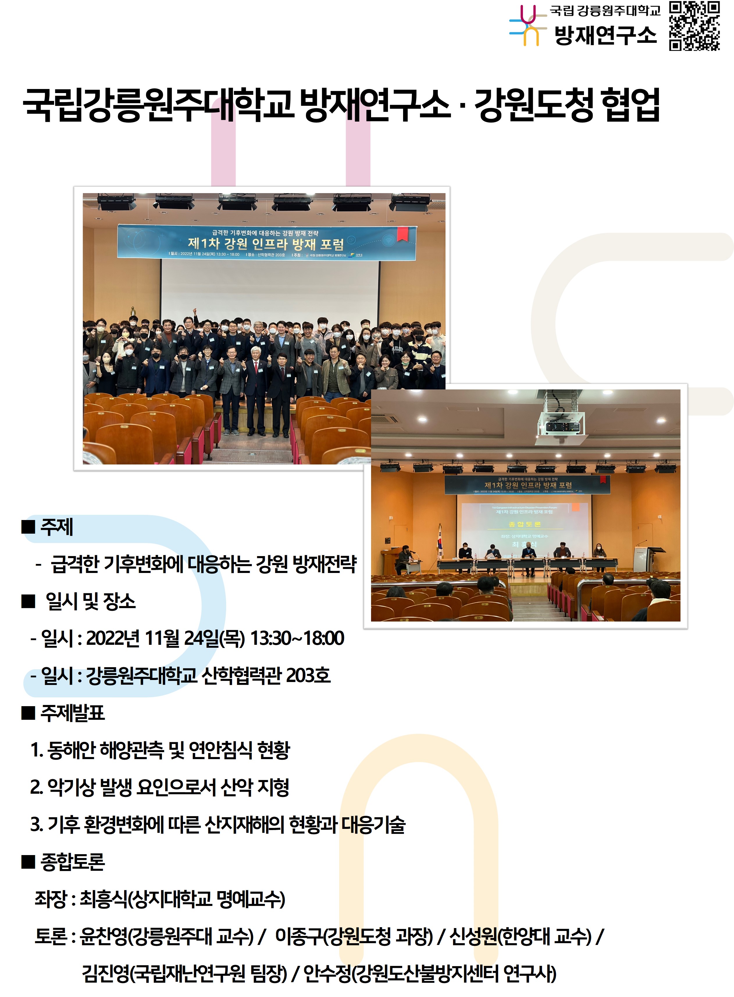 2022 제1차 강원 인프라 방재 포럼(22.11.24)