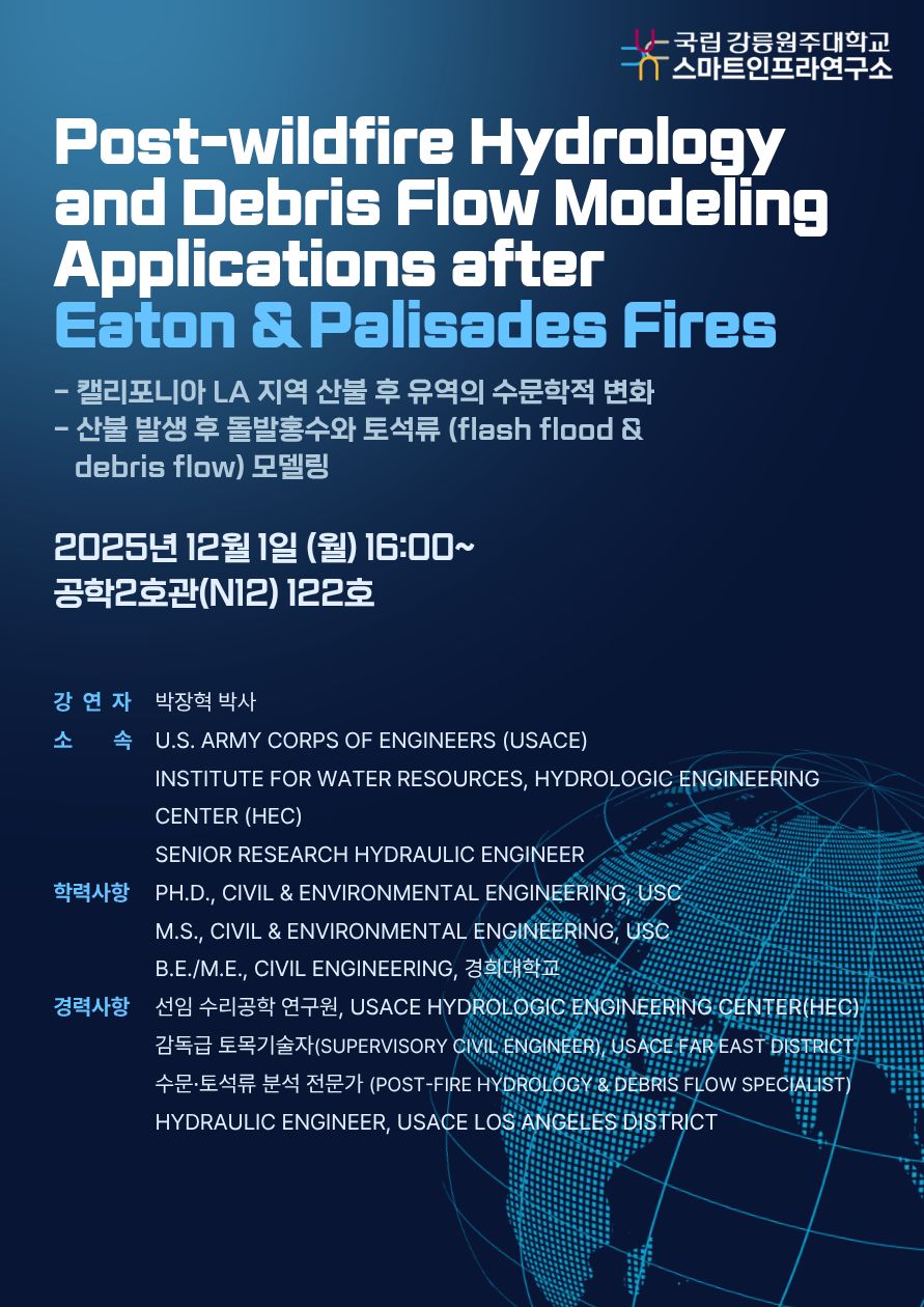■ 주제: Post-wildfire Hydrology and Debris Flow Modeling Applications after Eaton & Palisades Fires